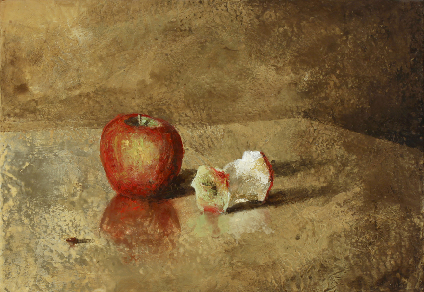 Les trois Nornes (Bijutsu), 2012 Encaustique et feuille d'or sur panneau 14.5” x 21” / 37 x 53 cm