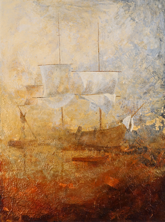 Eau mémoire, 2016 Encaustique, feuille d'or et de cuivre sur panneau 67” x 50” / 170 x 127 cm