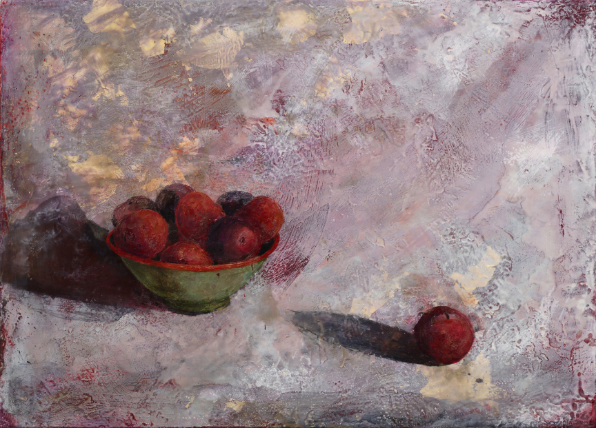 L’équilibre de l’instant, 2018 Encaustique et feuille d’or sur panneau 23” x 32” / 58.5 x 81 cm