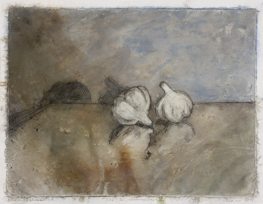 Jeu de résonances V, 2014 Intaglio & encaustique monoprint sur papier Kozo 12” x 15.5” / 30.5 x 39.5 cm