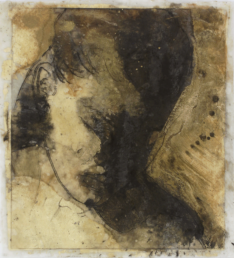 La nuit du temps V, 2014 Intaglio, feuille d'or & encaustique monoprint sur papier Kozo 12.5” x 10.5” / 32 cm x 27 cm