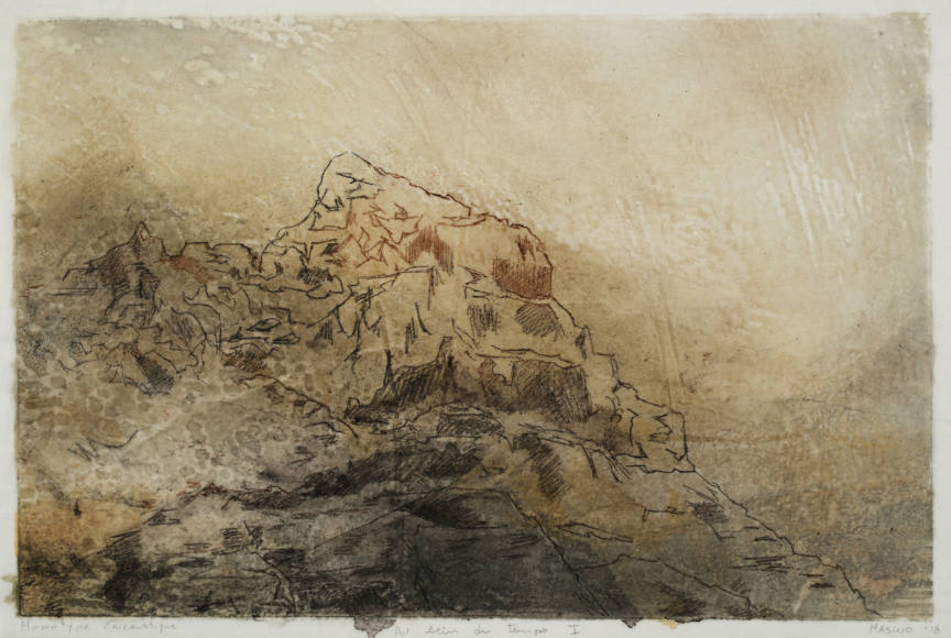 Au sein du temps I, 2018 Monotype à l'encaustique sur papier Kozo 12” x 18” / 30.5 x 46 cm