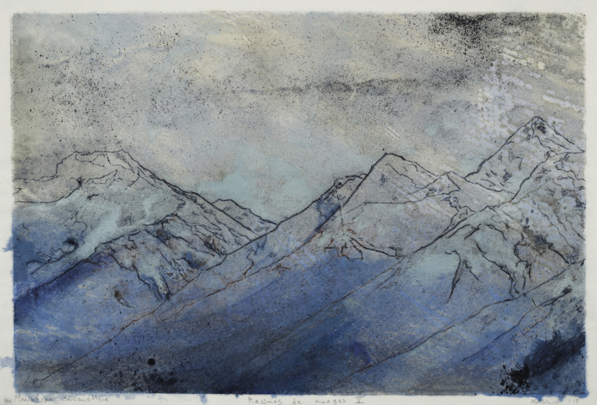 Racines de nuages V, 2018 Monotype à l'encaustique sur papier Kozo 12” x 18” / 30.5 x 46 cm
