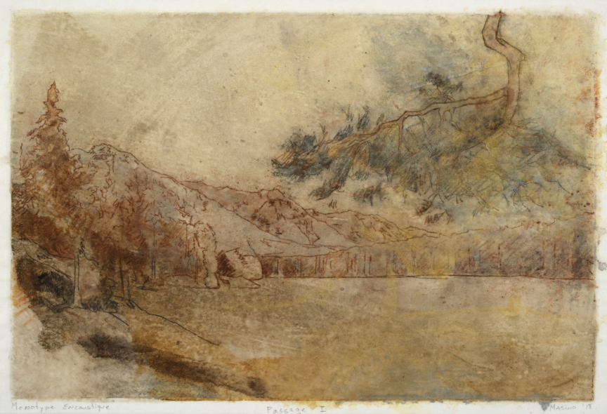 Passage I, 2018 Monotype à l'encaustique sur papier Kozo 12” x 18” / 30.5 x 46 cm