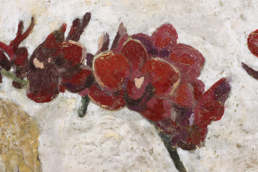 Temps - tempérance, 2015, détail Encaustique et feuille d'or sur panneau 23” x 48” / 59 x 122 cm