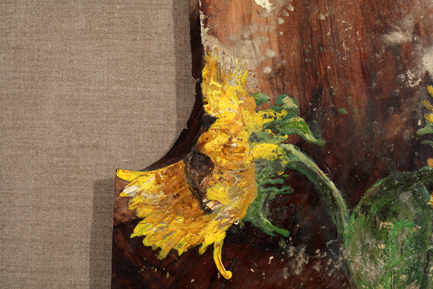 Encaustique et feuille d’or sur panneau, bois de noyer & toile de lin