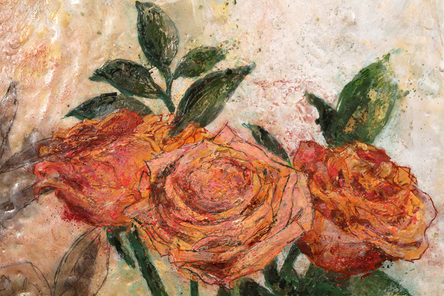 Flux & Lumen VI, 2017, détail Encaustique, feuille d’or et de cuivre sur panneau & toile de lin 38.5” x 28” / 96.5 x 71 cm