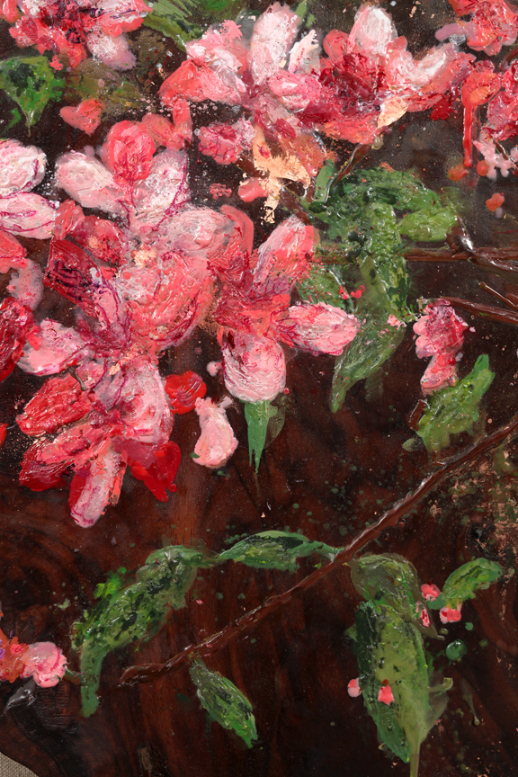 Flux & Lumen VIII, 2017, détail Encaustique et feuille d’or sur panneau, bois de noyer & toile de lin 38.5” x 28” / 96.5 x 71 cm