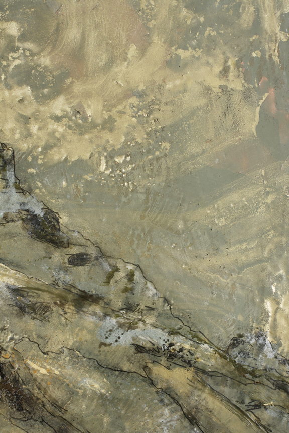 Frontières du possible, 2016, détail Encaustique, feuille d'or et feuille de cuivre sur panneau 32” x 23” / 81 x 58.5 cm