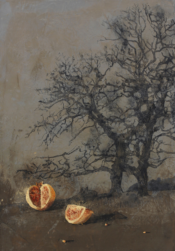 Yggdrasil (Arbre des mondes), 2016 Encaustique sur panneau 40” x 28” / 102 x 71 cm